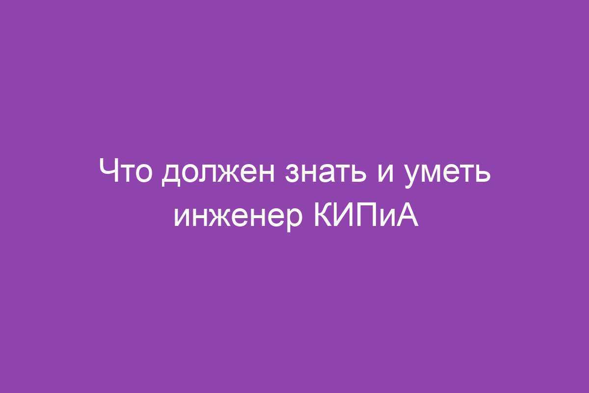 Что должен знать и уметь инженер КИПиА